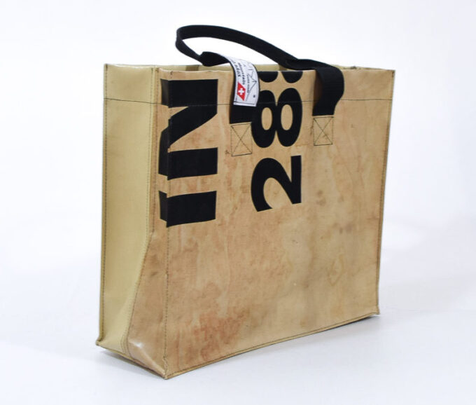 Dieser Shopper ist sehr robust, hat ein von innen erreichbares Fach (ca. 19 x 19 cm )das mit einem Klettverschluss abschliessbar ist. Zu tragen ist der Shopper mit 2 Tragegriffen, die ab Oberkante Shopper ca. 21 cm noch lang sind. Die Tragegurten sind 4 cm breit und sehr stark vernäht. Die Tragegurten sind oben zusammengenäht, dies ergibt einen grösseren Comfort beim halten der Griffe.