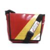 Diese Umhängetasche , Sidebag standard ,ist aus gebrauchter LKW Plane hergestellt.Er hat an der Rückeninnenwand ein zweigeteiltes Innenfach ( je ca. 20 x 16 cm ) Die Sidebag hat an der Front-Aussenwand unter dem Klappdeckel ein Handyfach, diverse Kugelschreiberfächer und ein Flatfach.
